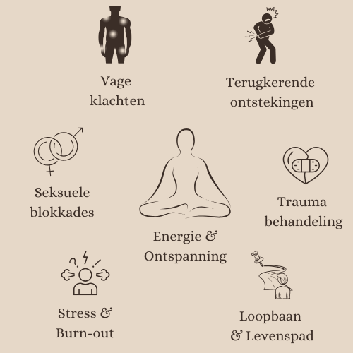 Soms is het zo dat er achter een fysieke klacht een emotionele of energetische betekenis ligt, waar een andere manier van kijken en voelen nodig is zodat heling én bovenal weer ruimte kan ontstaan in iemands leven.